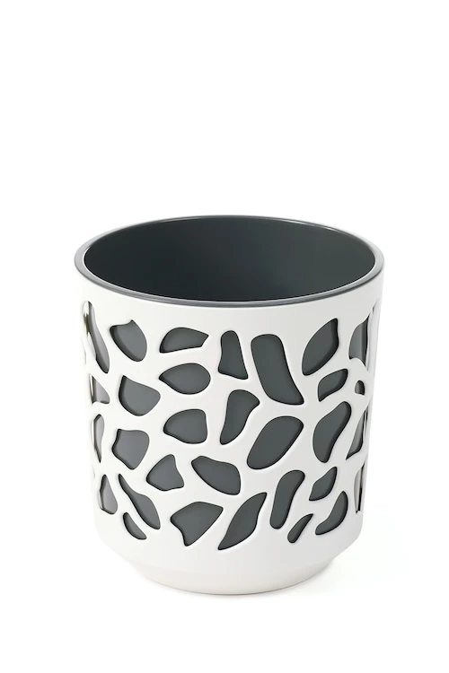 Masca decorativă DUET este o colecție excepțională cu design unic de ghiveci de flori. Corpul cu model decupat mat și inserția lucioasă creează o impresie tridimensională fascinantă prin jocul de lumină și umbră.