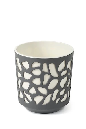 Masca decorativă DUET este o colecție excepțională cu design unic de ghiveci de flori. Corpul cu model decupat mat și inserția lucioasă creează o impresie tridimensională fascinantă prin jocul de lumină și umbră.